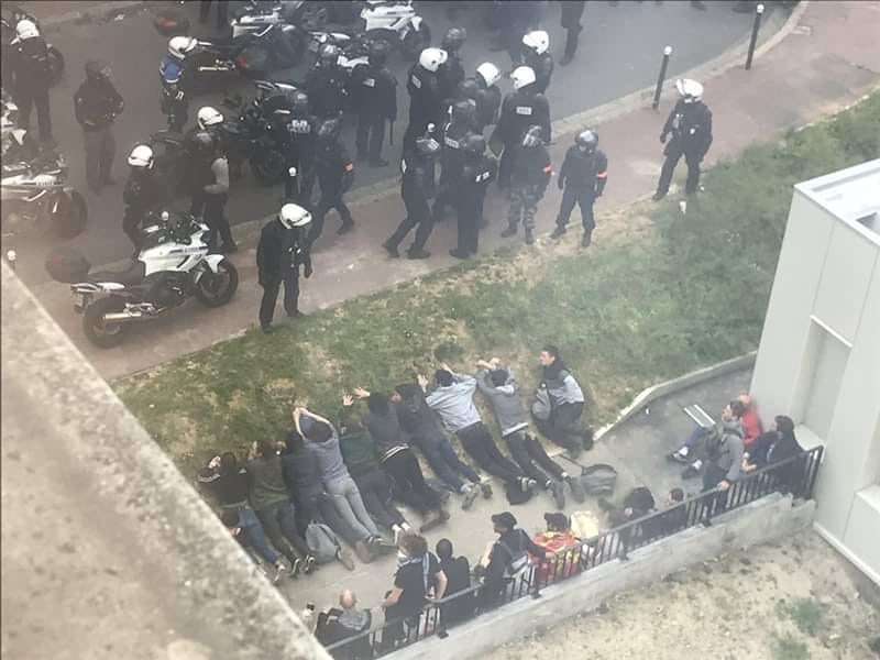 Les manifestants humiliés dans la cours de l’hôpital de la Pitié Salpêtrière à Paris le 1er mai avant d’être enfermés en cellule, alors qu’ils n’ont rien fait.