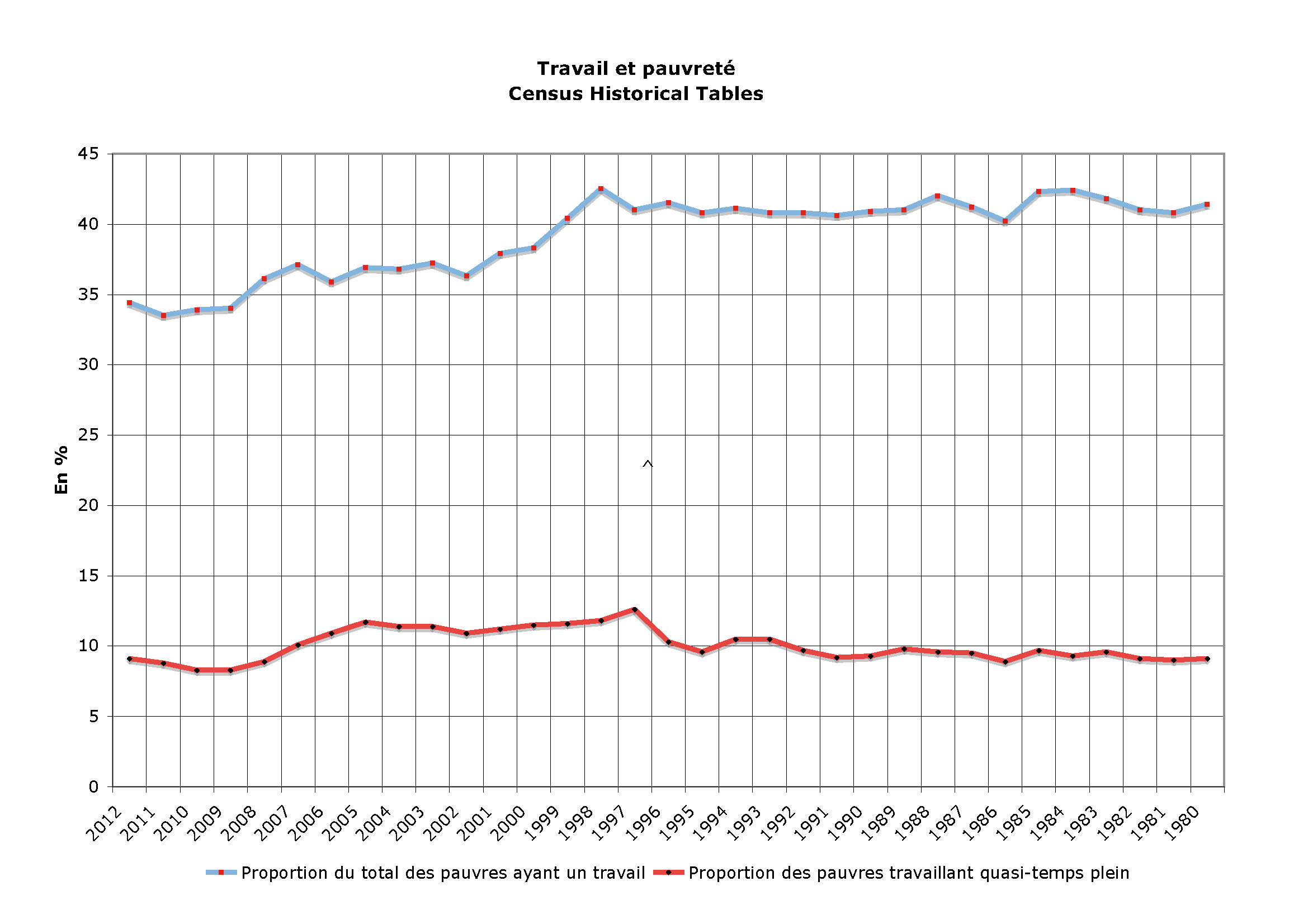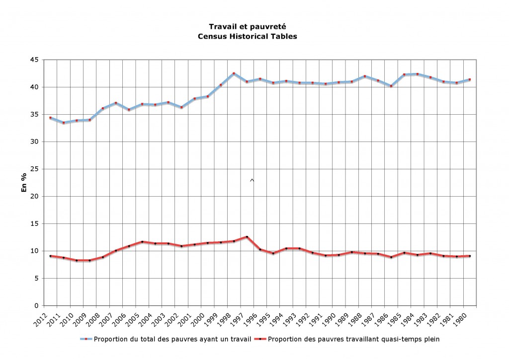 L’examen du travail des pauvres indiquent que c’est une dégradation des conditions d’emploi qui est à la source de la montée de la pauvreté.