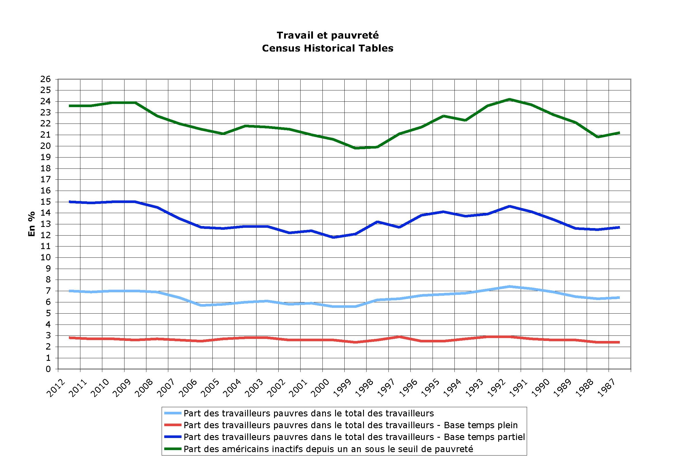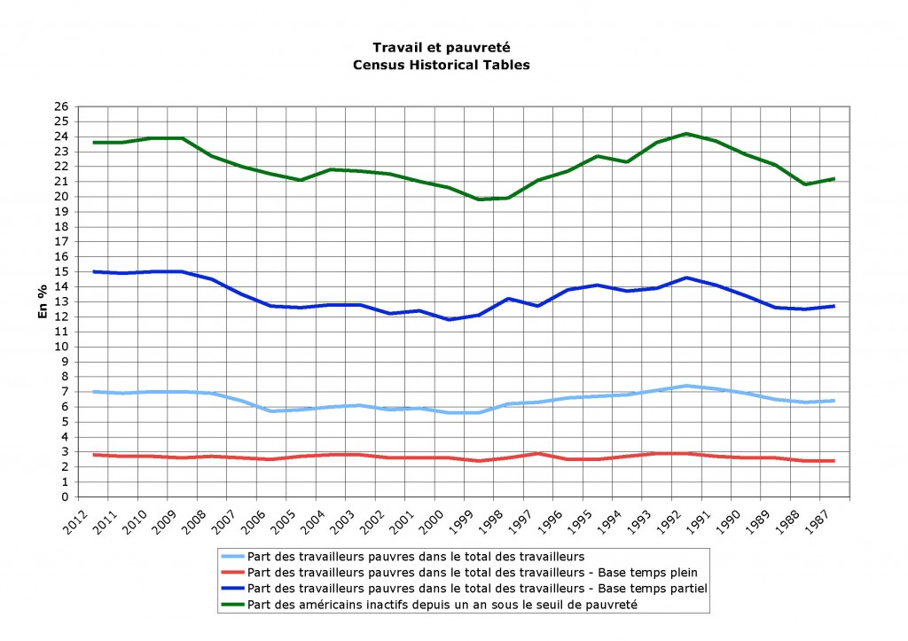 Nous retrouvons une dimension que les Powerty Historical Tables du Census occultent : la part grandissante des Américains chassés du marché du travail qui sombrent dans la pauvreté. Pour eux un emploi n’a plus rien de protecteur.