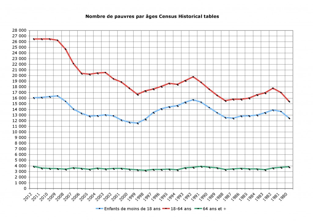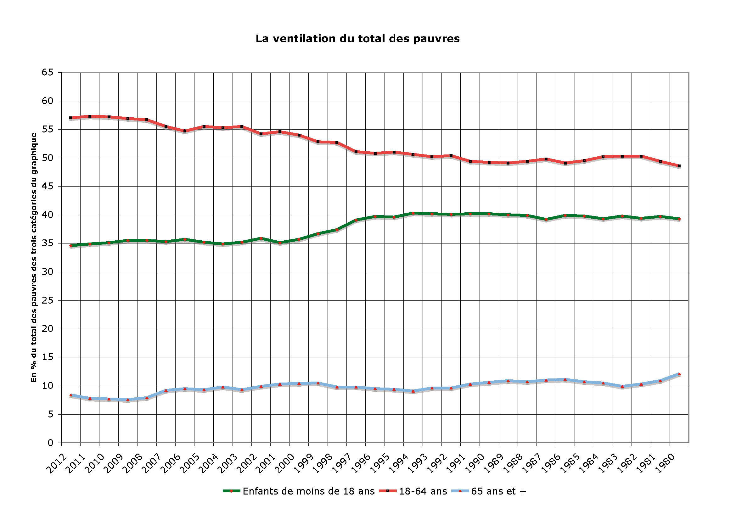 La ventilation du total des pauvres par classes d’âges et en pourcentage permet de confirmer notre analyse.