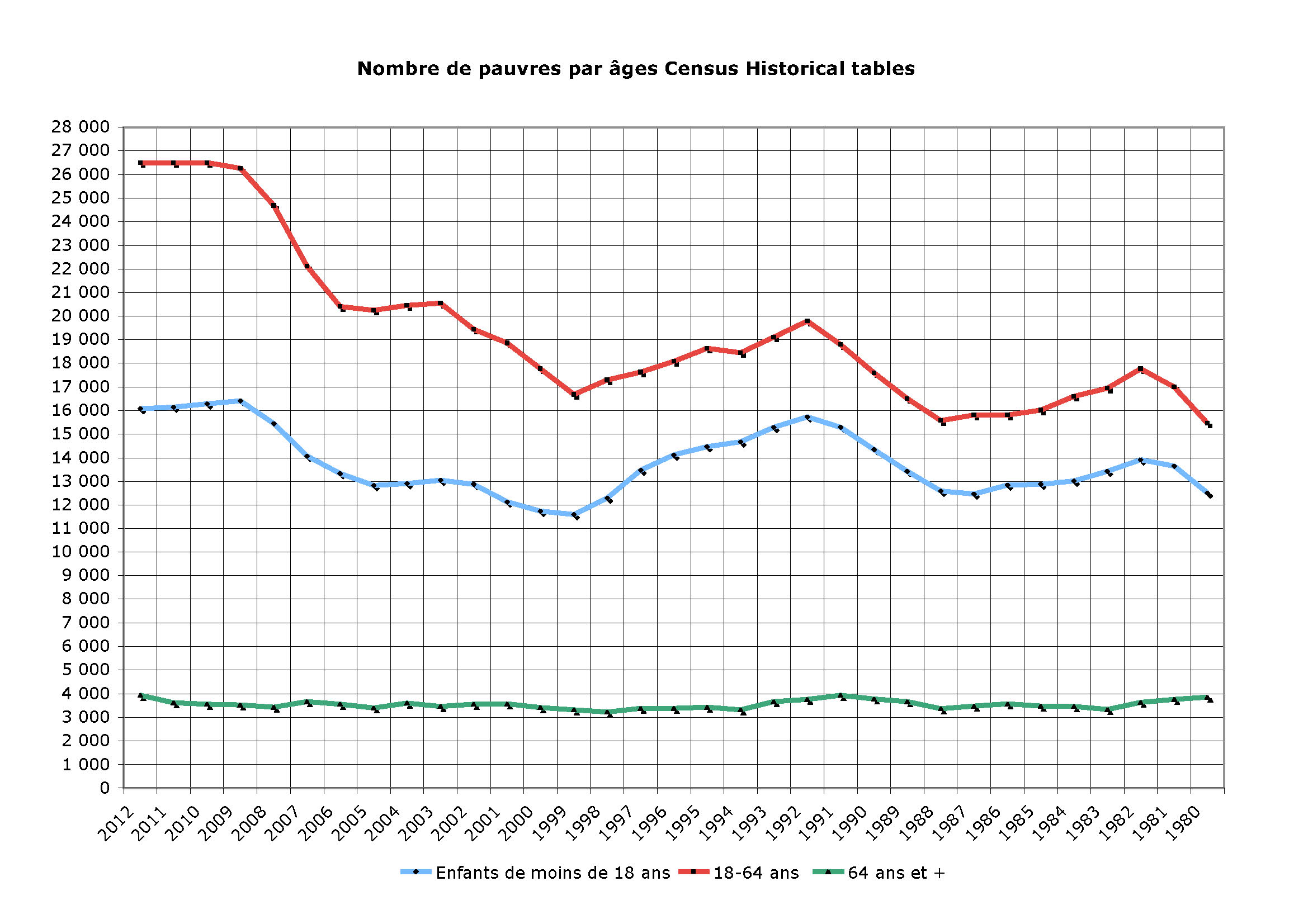 La ventilation des pauvres par classe d’âge permet de souligner que ce sont les personnes en âge de travailler qui semblent les plus atteintes par la montée de la pauvreté (B)